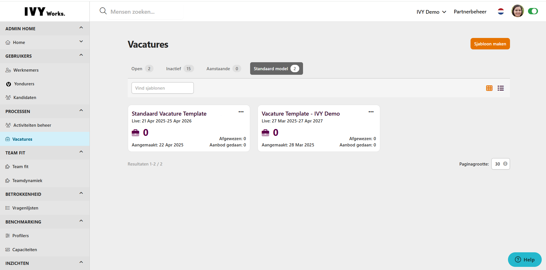 - In het rood ”failed”, geel ”on hold” en groen ”passed” komen kandidaten als je een automatisch generatie insteld aan de achterkant. Bijvoorbeeld iemand gaat automatisch naar het bakje van ”passed” als deze persoon boven de 70% matchingscore scoort. Dit is puur voor je eigen overzicht. Als hier wens naar is benader je projectmanager/consultant & contactpersoon van IVY die dit voor je op maat kan instellen.
