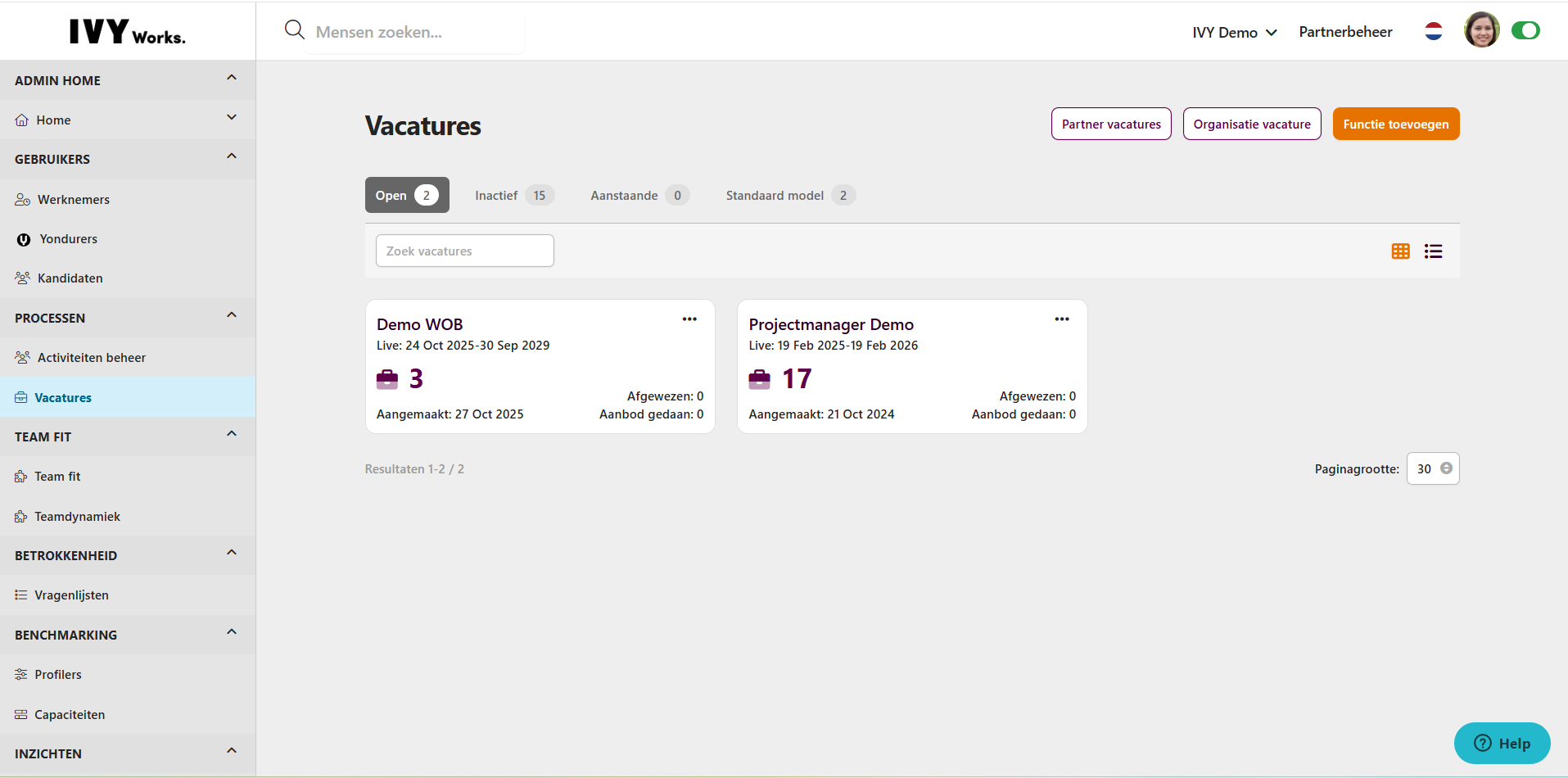 Match op vacature inzien: